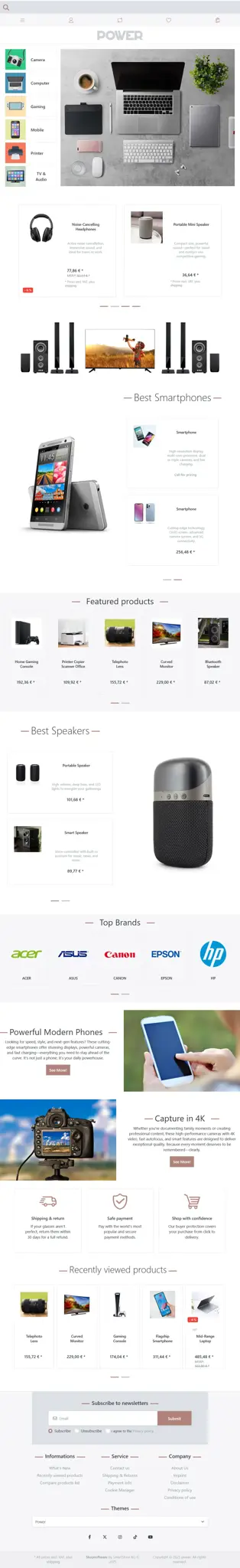 Power is a high‑performance Smartstore theme designed for shops with large product ranges. Its full‑width layout maximizes your catalog’s visibility, while the responsive design ensures a flawless shopping experience on any device.